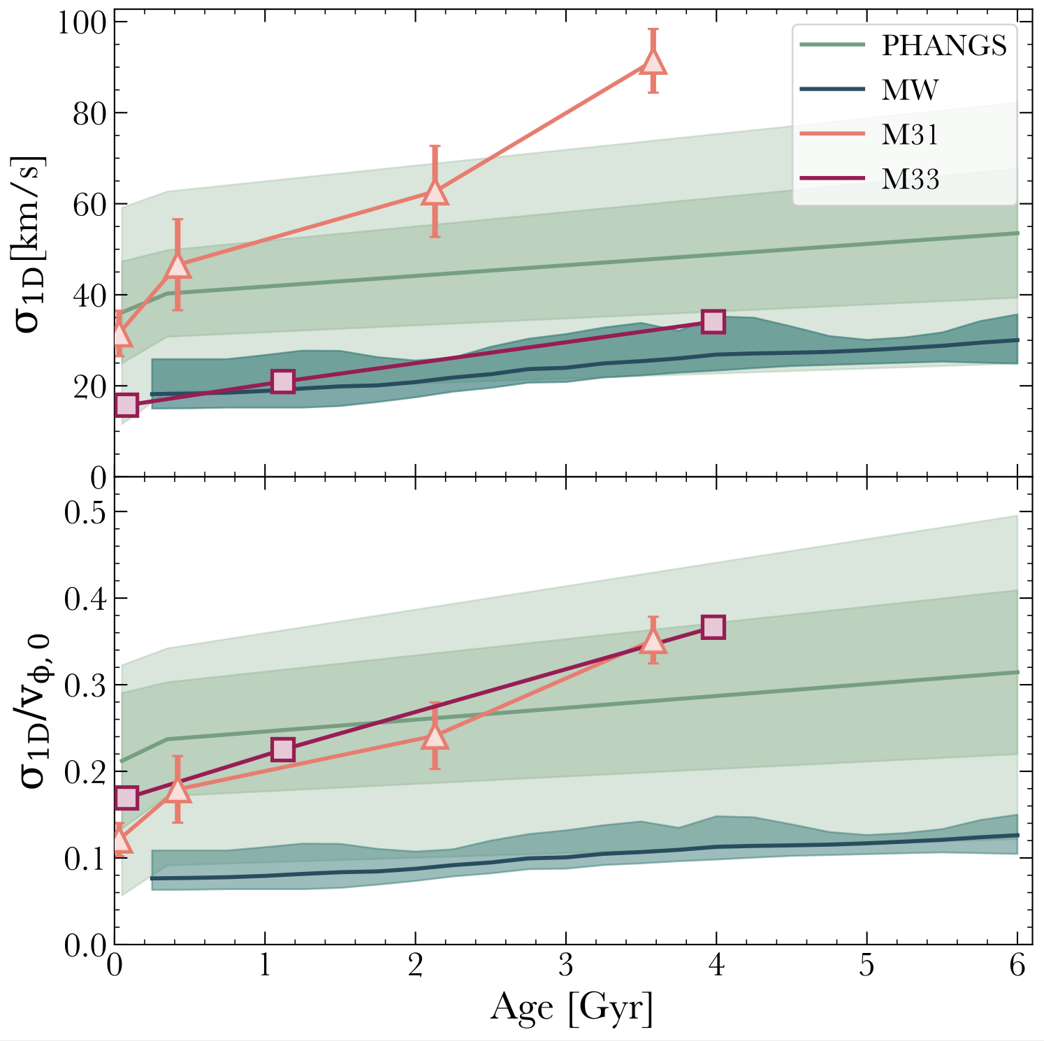 We compile observations of the Milky Way's age - velocity dispersion relation from the literature, and compare them to measurements for other nearby star-forming disk galaxies.
